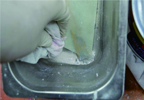 ⑨刮涂完畢。用稀釋劑清洗刮涂工具。如圖2-50所示。