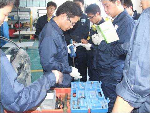 老師們親自實(shí)操鈑金修復(fù)