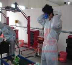 1)壓縮機最好為螺桿式,15 KW以上,每分鐘供氣量不小于2立方米。 2) 各比賽工位要留有壓縮空氣出口2個,連接工具的壓縮空氣軟管要求內(nèi)徑不小于8毫米,長度每根不少于10米,軟管最好能具備防靜電功能; 3)空氣壓力要求0.6-0.8Mpa,要求安裝專業(yè)精密過濾器,保證壓縮空氣干燥、無塵、無水、潔凈,過濾精度應達到0.01微米;4)比賽場地要求至少1臺烤房,烤房內(nèi)照明完好,視窗清潔,通風正常,最好應具備二面觀測窗 5)準備4臺以上紅外線短波烤燈,保證連續(xù)工作時間能達到1小時以上。